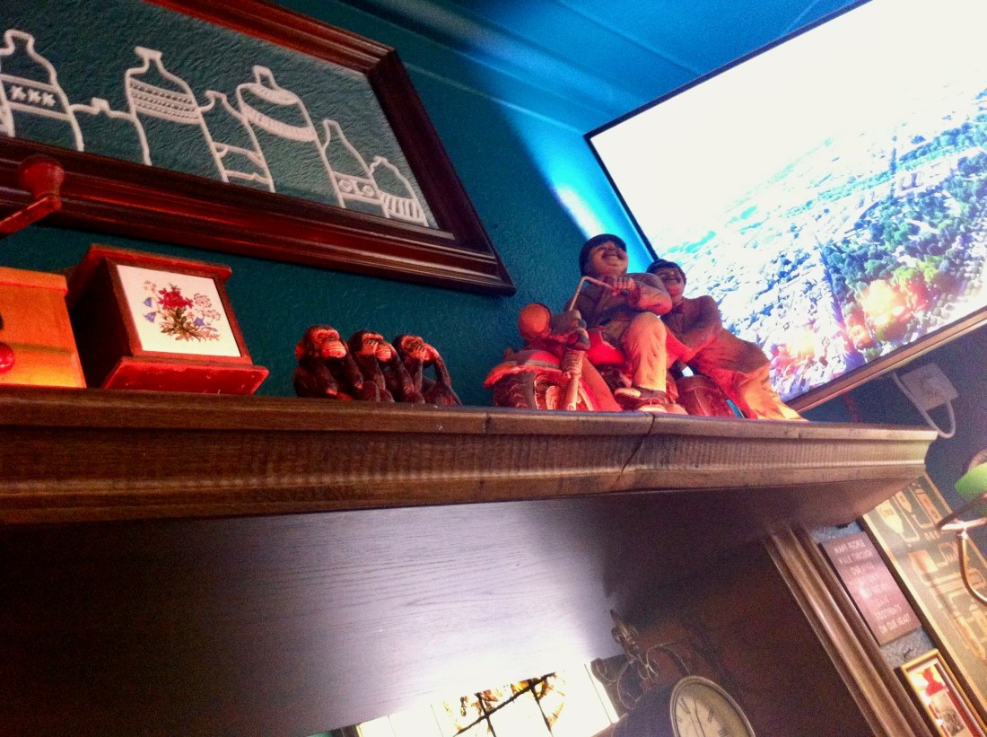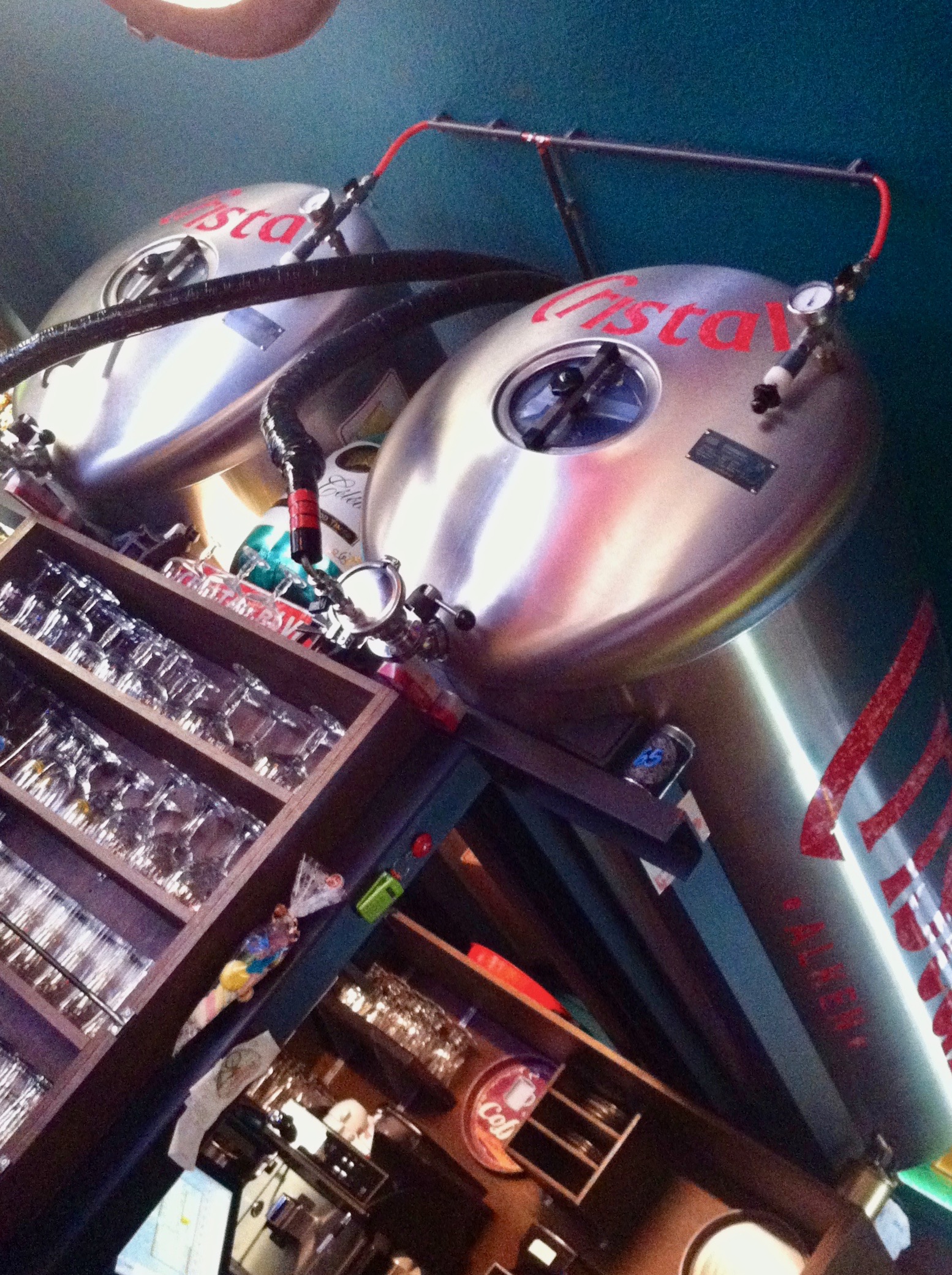 De bommen zien er niet gevaarlijk uit maar ik kan me niet van de indruk ontdoen dat als de inhoud te snel vrijkomt er toch behoorlijk wat schade kan aangericht worden. Voorzichtigheid is geboden. Ik heb wat van de inhoud laten weglekken en moet daarbij jammer genoeg wat radioactieve straling opgelopen hebben! Mijn motorisch vermogen raakte behoorlijk verstoord. D’r stonden ook drie lokale SP-A mandatarissen aan de toog. De Russen hebben het dus in ’t snotje! Die communistische spionnen zijn niet te vertrouwen. Zouden ze de laatste lokale verkiezingen “gemanipuleerd” hebben? Volgende keer onderzoek ik ’t verder! Ajuus…